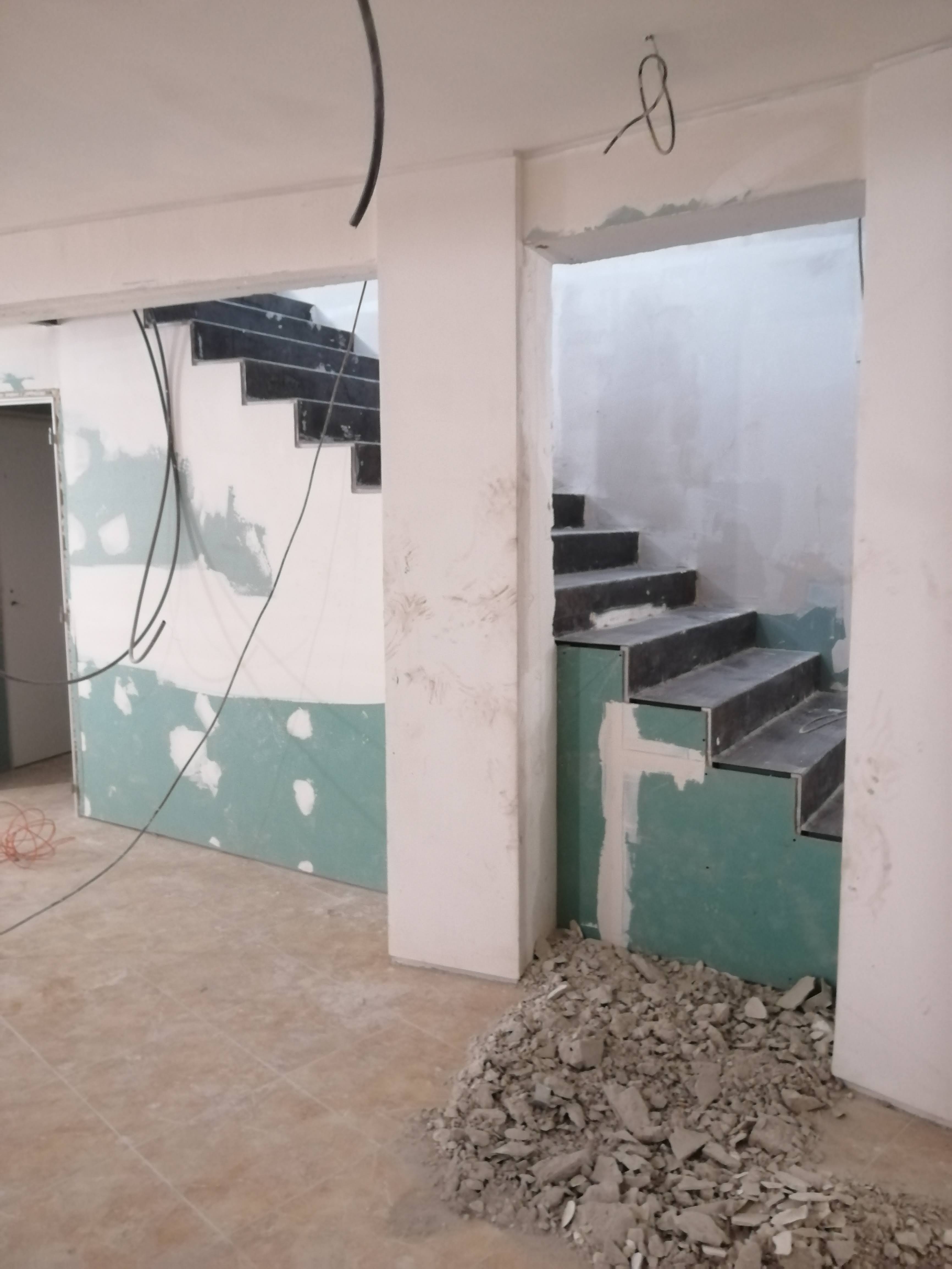 –Demolição de paredes e pisos.